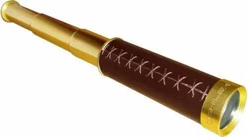 Monocular extensible con terminación en bronce. Forrado en cuero. 12 aumentos. Diámetro del objetivo 30mm. Color del lente azul.